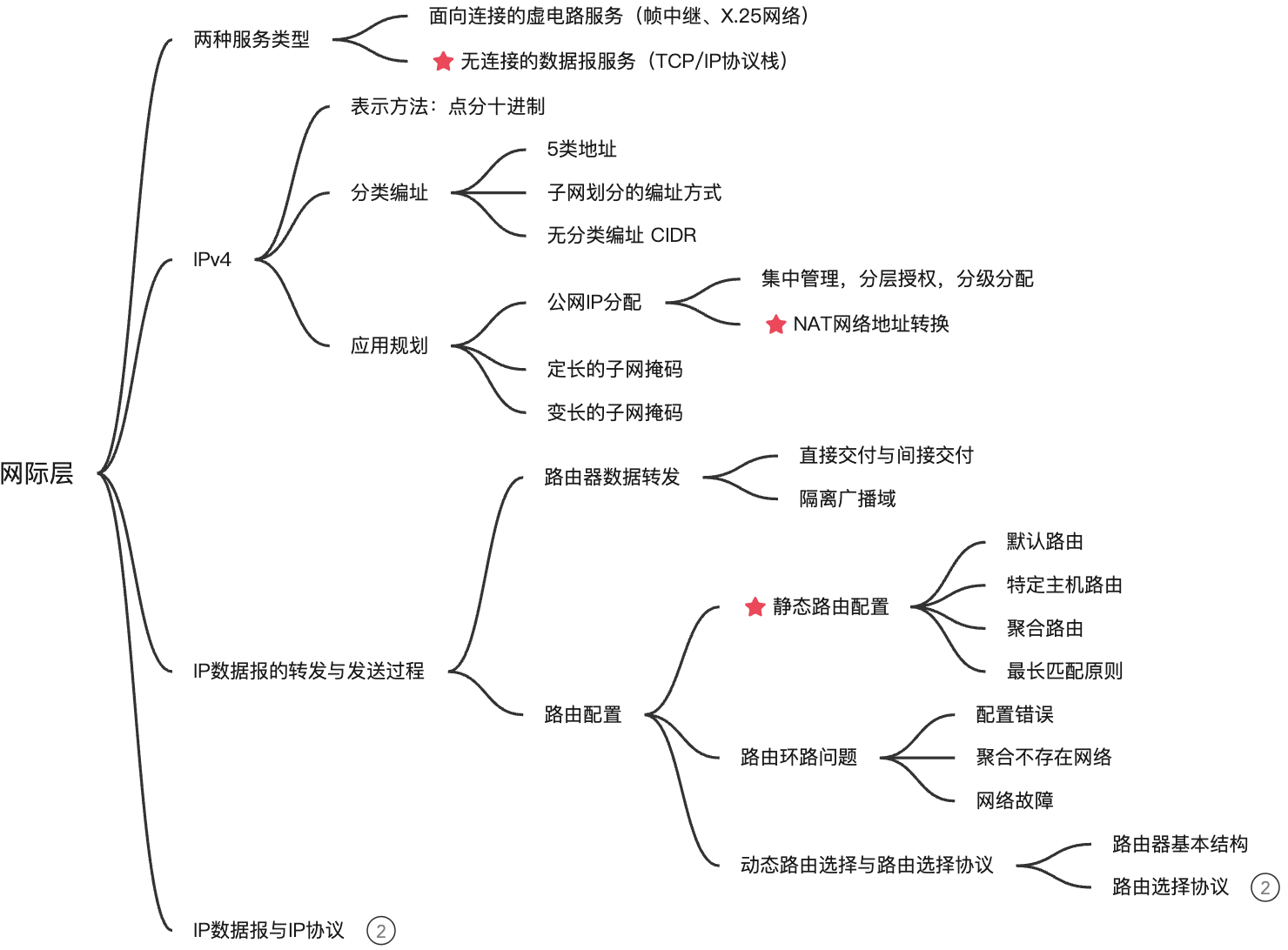- 由于TCP/IP协议栈的网络层使用网际协议IP,它是整个协议栈的核心协议,因此在TCP/IP协议栈中网络层常称为网际层